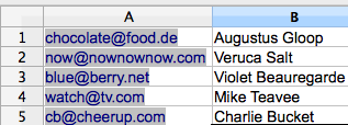 It’s important that you do it with email address in column A and name in column B like this: